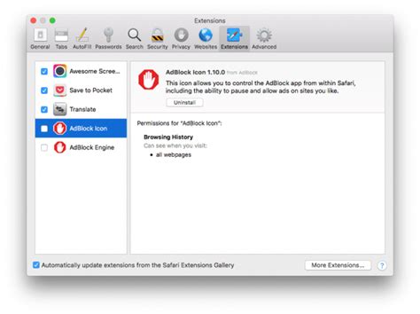 Voor de Mac-gebruikers die de voorkeur geven aan Safari, is het proces van AdBlock opzeggen iets anders, omdat Safari extensies op een unieke manier beheert.