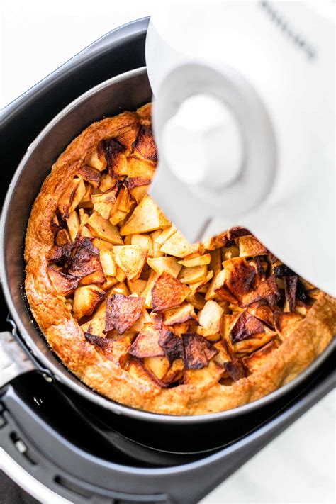Alright, let’s get down to the nitty-gritty and walk through the step-by-step instructions for baking an apple pie in your air fryer . First, start by preparing your apples. Peel, core, and thinly slice your 4-5 medium-sized apples. In a large bowl, combine the apple slices with ½ cup of granulated sugar, ¼ cup of brown sugar, 2 tablespoons of flour, 1 teaspoon of cinnamon, and a pinch of nutmeg. Mix everything together until the apples are evenly coated. Next, prepare your pie crust. If you’re using store-bought crust, simply unroll it and place one sheet in the bottom of your air fryer basket. If you’re making your own crust, roll it out to fit the basket. Trim any excess dough and crimp the edges to create a decorative border. Pour the apple filling into the prepared pie crust, making sure to distribute it evenly. Dot the top of the filling with 2 tablespoons of butter, cut into small pieces. Cover the filling with the second sheet of pie crust. Trim any excess dough and crimp the edges to seal the pie. Cut a few slits in the top crust to allow steam to escape during baking. In a small bowl, whisk together one egg with a tablespoon of water to create an egg wash. Brush the top crust with the egg wash to give it a golden sheen. Now it’s time to bake! Preheat your air fryer to 320°F (160°C). Carefully place the apple pie in the air fryer basket and bake for 30-35 minutes, or until the crust is golden brown and the filling is bubbly. Keep an eye on it to prevent burning, as air fryers can vary in temperature. Once the pie is done, remove it from the air fryer and let it cool for at least 30 minutes before slicing and serving. This will allow the filling to set and prevent it from being too runny. And there you have it – a delicious and easy apple pie baked to perfection in your air fryer! Serve it with a scoop of vanilla ice cream or a dollop of whipped cream for an extra special treat.
