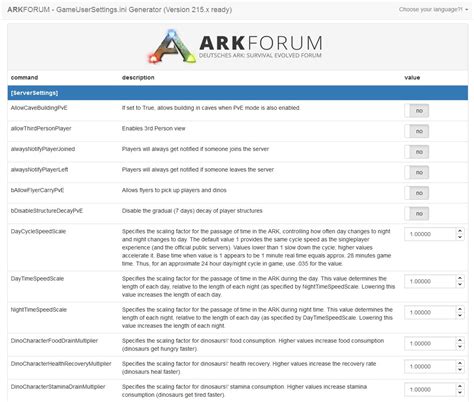 ARK Config Generator is a web-based tool that allows you to generate INI files for your ARK server. It provides a simple and easy-to-use interface for modifying settings, and it supports a wide range of options. While the interface is in English, it’s fairly straightforward, and you can easily translate any unfamiliar terms.