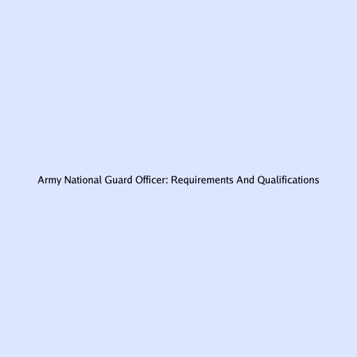Army National Guard Officer: Requirements and Qualifications