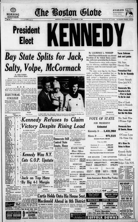 The Kennedy family had deep ties to Boston, and Boston newspapers closely followed their political careers and personal lives. The election of John F. Kennedy as president in 1960 brought a sense of pride and optimism to the city, and the newspapers celebrated his accomplishments and vision for the future. However, the assassination of President Kennedy in 1963 plunged the city into mourning, and the newspapers captured the grief and shock of the nation. These articles offer a glimpse into the Kennedy era and its lasting impact on Boston and the country.