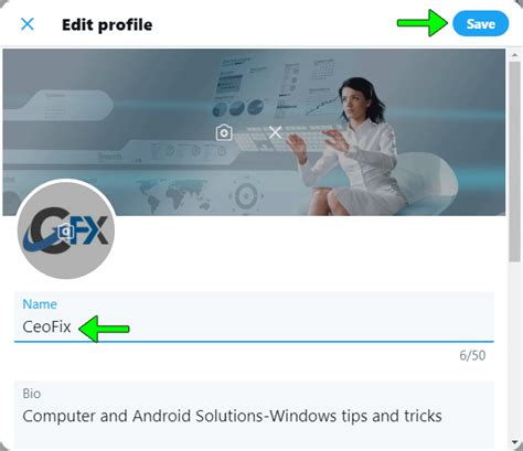 • On the Website and Mobile App : Click or tap on the “Save” button. Twitter will update your display name, and you’ll see the new name reflected on your profile and in your tweets.