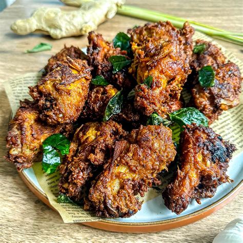 Step 4: Fry the Chicken. Once the chicken is cooked and the liquid has mostly evaporated, remove the chicken pieces from the pot, letting any excess liquid drip off. In a separate, deep pan or wok, heat a generous amount of cooking oil over medium-high heat. You want enough oil to deep-fry the chicken pieces. Test the oil by dropping a tiny bit of the spice paste or a wooden chopstick; if it sizzles immediately, the oil is ready. Carefully place the chicken pieces into the hot oil, being careful not to overcrowd the pan. Fry the chicken in batches for about 3-5 minutes per side, or until golden brown and crispy. If you’re adding turmeric leaves or curry leaves, you can toss them into the hot oil for the last minute of frying; they’ll become wonderfully crisp and aromatic. Use a slotted spoon to remove the fried chicken and place it on a wire rack set over a baking sheet to drain excess oil. This keeps the chicken crispy! For an extra crispy finish, you can do a quick second fry at a slightly higher temperature for about 1-2 minutes after the first batch is done.