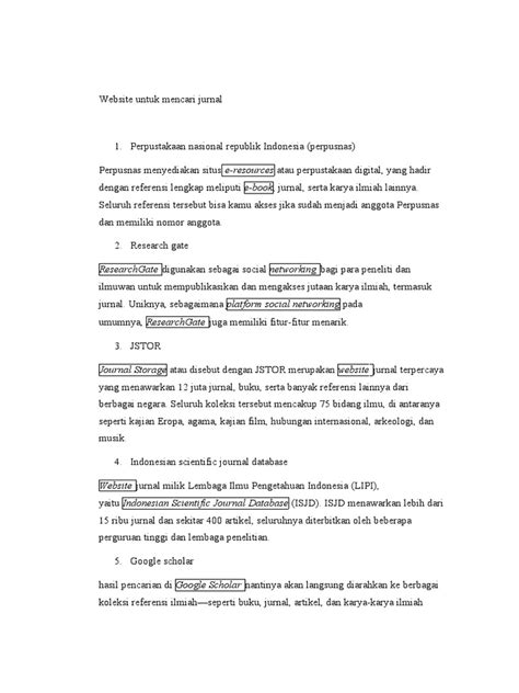 Oke, guys, sekarang kita masuk ke bagian yang paling seru: kenalan sama beberapa database jurnal populer dan gimana sih cara kita manfaatin mereka biar dapet artikel yang kita mau. Database jurnal populer itu banyak banget, tapi ada beberapa yang emang jadi primadona karena kelengkapan dan kemudahan aksesnya. Yang pertama, pasti udah pada kenal dong, Google Scholar . Ini kayak titik awal yang paling gampang buat kebanyakan orang. Kelebihannya? Gratis dan cakupannya luas banget, nyakup banyak jurnal, buku, dan bahkan tesis. Cara pakainya juga simpel banget, tinggal ketik kata kunci di kolom pencarian, terus Google Scholar bakal nyariin semuanya. Tapi, inget ya, karena gratisan dan cakupannya terlalu luas, kadang suka ada artikel yang kurang relevan atau nggak bener-bener dari jurnal ilmiah yang kredibel. Jadi, perlu sedikit filter lagi pas baca hasilnya. Nah, kalau mau yang lebih serius dan terstruktur, ada Scopus . Ini adalah salah satu database jurnal terbesar yang fokus ke abstrak dan sitasi dari jurnal ilmiah peer-review. Buat kalian yang lagi nyusun skripsi atau tesis, Scopus itu mantap banget karena kalian bisa ngelihat seberapa sering sebuah artikel dikutip, yang menandakan pengaruhnya. Fitur advanced search -nya juga keren, bisa dicari berdasarkan penulis, institusi, tahun, sampai topik spesifik. Syaratnya? Biasanya perlu akses langganan, yang seringkali disediain sama kampus. Terus, ada juga Web of Science . Mirip-mirip sama Scopus, Web of Science ini juga database jurnal yang gedeee banget dan fokus ke sitasi. Dia punya keunggulan di cakupan jurnal-jurnal berindeksnya yang dianggap paling prestisius. Lagi-lagi, ini biasanya aksesnya berbayar. Selain itu, buat yang di bidang kedokteran dan biologi, PubMed itu wajib banget. Database ini gratis dan isinya jutaan artikel dari jurnal biomedis. Pencariannya juga fokus banget ke istilah-istilah medis. Jadi, intinya, cara menggunakan database jurnal itu dimulai dari tahu kata kunci yang pas, terus manfaatin fitur pencarian yang ada. Kalau mau hasil yang lebih akurat, coba deh pakai advanced search dan jangan ragu buat kombinasiin beberapa kata kunci pakai operator Boolean (AND, OR, NOT).