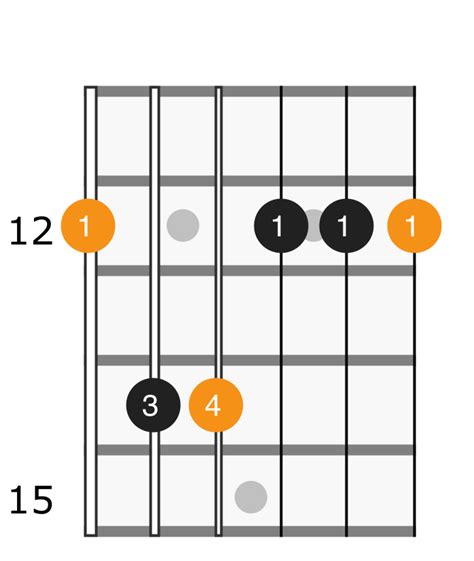• Easier Voicing: Another easier voicing involves skipping the low E string. Place your index finger on the 11th fret of the A string, middle finger on the 12th fret of the D string, ring finger on the 12th fret of the G string, and pinky on the 11th fret of the high E string. This is a higher-pitched voicing, which works well in many contexts.