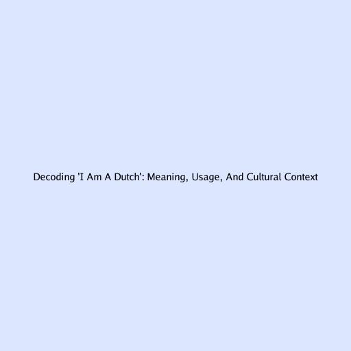 Decoding ‘I Am a Dutch’: Meaning, Usage, and Cultural Context