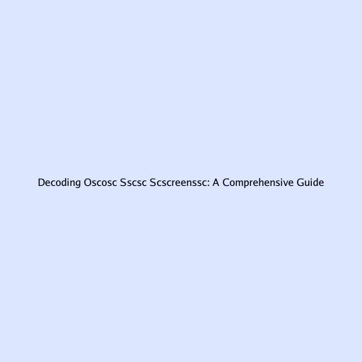 Decoding Oscosc Sscsc Scscreenssc: A Comprehensive Guide