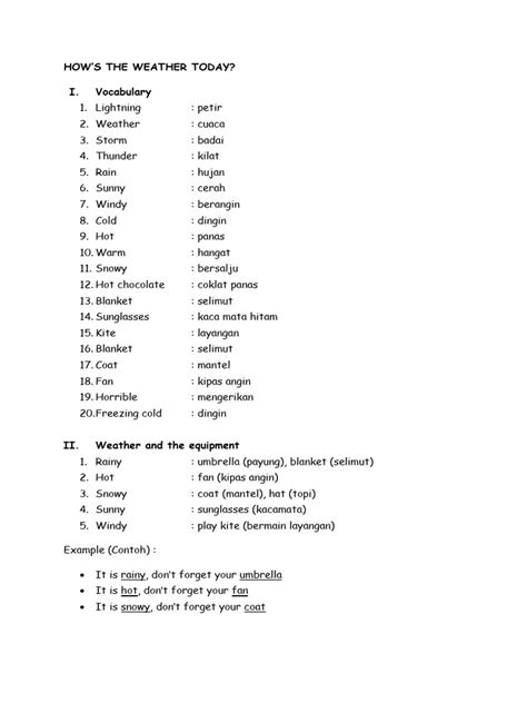 Let’s break it down bit by bit, shall we? This will help you get a clearer picture of how it works. First, we have “the weather” . This refers to the atmospheric conditions at a specific time and place. This includes the temperature, precipitation, wind, and other elements. Then, we have “is” , which is a verb used to link the subject to its description. Next up, is “hot” . This is the adjective that describes the temperature. Hot means a high temperature, implying the environment is warmer than usual. Finally, we have “today” , indicating that the weather being referred to is the current day’s weather. Putting it all together, “the weather is hot today” is a simple description of the current weather conditions. In Indonesia, with its tropical climate, the phrase carries a particularly meaningful context. It implies discomfort and a need to stay cool, and this is where “artinya” comes in, allowing for deeper reflection of how the sentence can be interpreted.