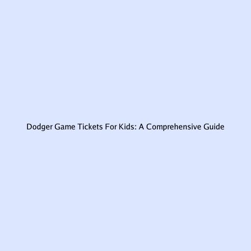 Dodger Game Tickets For Kids: A Comprehensive Guide