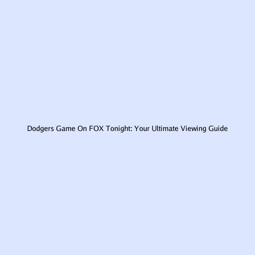 Dodgers Game on FOX Tonight: Your Ultimate Viewing Guide