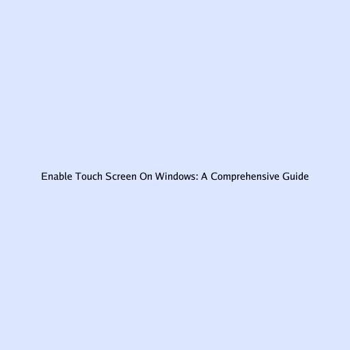 Enable Touch Screen on Windows: A Comprehensive Guide