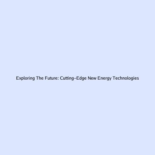 Exploring The Future: Cutting-Edge New Energy Technologies