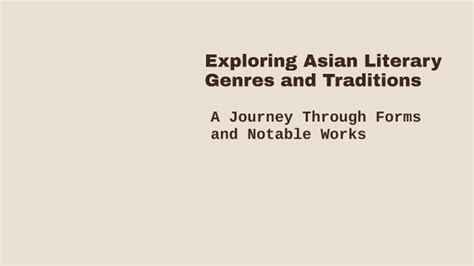 Exploring the Richness of Asian Genres