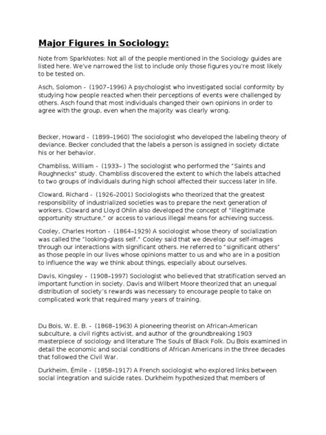 Figures In Sociology And Their Thoughts
