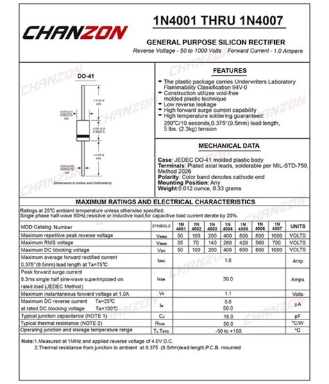 • Package Type: DO-41. This refers to the physical dimensions and shape of the diode. This is important when considering physical compatibility with the circuit.