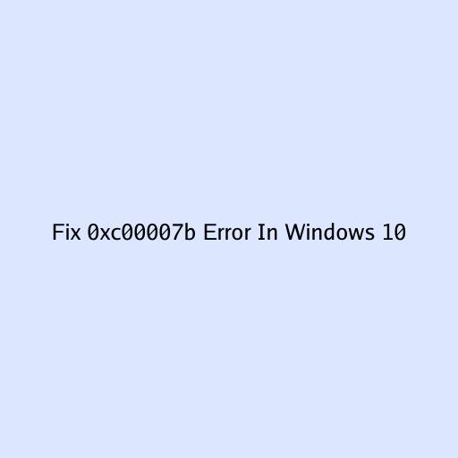 Fix 0xc00007b Error In Windows 10
