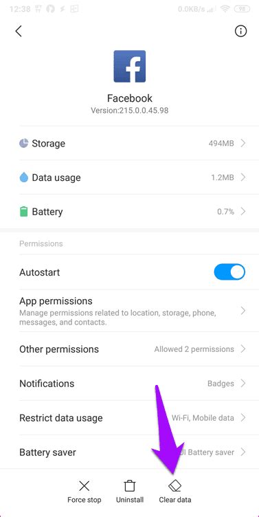 Clear Facebook App Cache