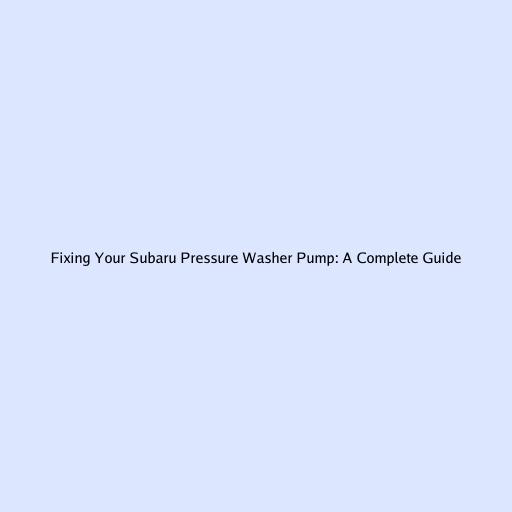 Fixing Your Subaru Pressure Washer Pump: A Complete Guide