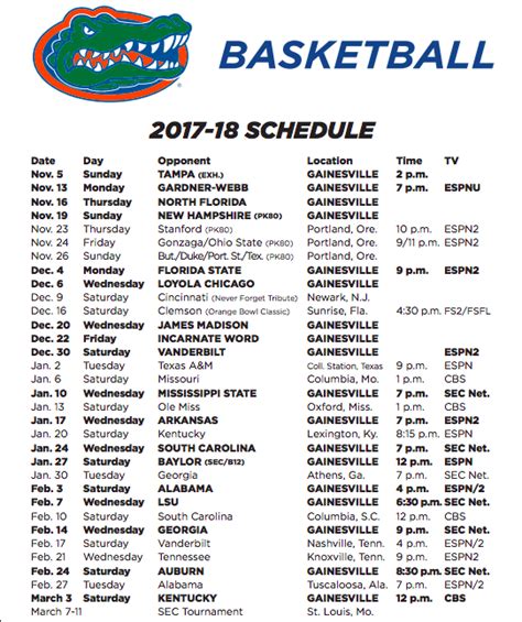 So, you’re hyped about the Florida Gators basketball game schedule , but how do you actually keep up with all the action? Don’t worry, guys, we’ve got you covered. The most straightforward way, of course, is to check the official Florida Gators athletics website. They’ll have the most up-to-date schedule, including any changes or game time adjustments. You can usually find ticket information there too, so you can plan your trips to the O’Connell Center. Another awesome resource is ESPN. Most Gators games, especially SEC matchups, will be broadcast on ESPN, ESPN2, ESPNU, or the SEC Network. Check your local listings or use the ESPN app to see where each game is being televised. If you’re more of an audio person, or maybe you’re stuck in the car, don’t forget about radio broadcasts. The official Florida Gators IMG Sports Network will carry most, if not all, games. You can often stream these online through the Gators’ official athletics site or various sports radio apps. And let’s not forget about social media! Following the official Florida Gators basketball accounts on platforms like Twitter (X), Instagram, and Facebook is a goldmine for real-time updates, behind-the-scenes content, and game-day excitement. They often post score updates, key plays, and fan reactions throughout the game. For those who love diving into the stats and analysis, websites like KenPom or Bart Torvik offer incredibly detailed metrics, though those might be a bit more for the hardcore stat heads. But for the everyday fan, sticking to the official channels, major sports networks, and social media will keep you in the loop. It’s all about staying connected to your team, no matter where you are. We want to make sure you never miss a single dunk, a crucial rebound, or a game-winning shot. So, get your alerts set, bookmark your favorite sites, and prepare to be locked in all season long!