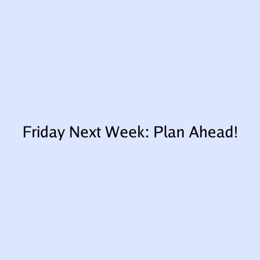 Friday Next Week: Plan Ahead!