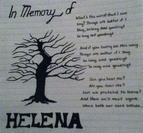 Beyond the personal connection to Gerard and Mikey’s grandmother, “Helena” resonates with listeners for its universal themes of loss and grief. The song speaks to anyone who has experienced the pain of losing someone they love. It’s a cathartic anthem for those struggling with the emotional aftermath of death. The song Helena meaning goes beyond just mourning a specific person; it touches upon the broader experience of dealing with mortality and the fragility of life. It reminds us that death is an inevitable part of the human experience, and that we must find ways to cope with the pain and loss it brings. The lyrics also explore the complexities of grief, acknowledging the anger, guilt, and confusion that often accompany it. It doesn’t shy away from the darker aspects of mourning, but rather embraces them as a natural part of the healing process. This honesty is what makes the song so relatable and comforting to those who are grieving. “Helena” also serves as a reminder of the importance of cherishing memories and keeping the spirit of the deceased alive. The lyrics emphasize the power of love to transcend death and to provide solace in times of sorrow. It suggests that even though our loved ones may be gone, their impact on our lives remains, and their memories can continue to inspire and guide us. Furthermore, the song can be interpreted as a commentary on the performative nature of grief. The line “ So long and goodnight ” can be seen as a sarcastic jab at the rituals and conventions surrounding death, suggesting that they often feel empty and meaningless. This interpretation adds another layer of depth to the song, questioning the ways in which we grieve and the expectations placed upon us by society. Ultimately, the meaning of “Helena” is subjective and open to interpretation. Each listener brings their own experiences and perspectives to the song, finding different meanings and connections within its lyrics. What matters most is the emotional impact the song has on the individual, providing comfort, catharsis, and a sense of shared experience in the face of loss. It’s a testament to the power of music to connect us, to heal us, and to remind us that we are not alone in our grief. The enduring popularity of “Helena” is a reflection of its timeless themes and its ability to resonate with listeners across generations. It’s a song that will continue to be cherished for its emotional depth, its powerful lyrics, and its unwavering honesty.