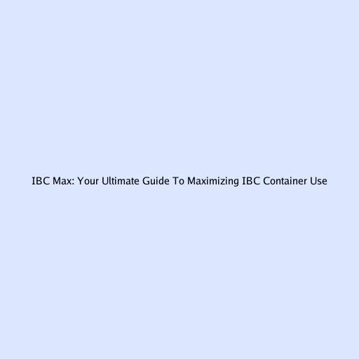 IBC Max: Your Ultimate Guide to Maximizing IBC Container Use