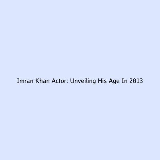 Imran Khan Actor: Unveiling His Age in 2013