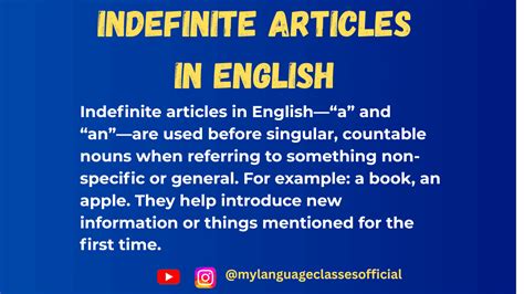Okay, so indefinite articles are basically ‘a’ and ‘an’ . We use them before nouns that are singular and countable , but—here’s the key—they refer to something not specific . Think of it as introducing a general item or idea rather than pointing out a particular one. For example, saying ‘a cat’ refers to any cat, not a specific cat you or someone else might know. The indefinite article signals that we are talking about something in a non-specific way, which is super important for clarity in communication. Using indefinite articles correctly helps your audience understand whether you are referring to something general or specific. This distinction is critical in both writing and speaking, ensuring your message is accurately conveyed. Plus, mastering indefinite articles makes your language sound more polished and professional. So, understanding when and how to use ‘a’ and ‘an’ is a valuable skill that enhances your overall communication abilities. Remember, it’s all about context and whether you are introducing something new or referring to something already known. Get this right, and you’ll be well on your way to grammatical greatness!