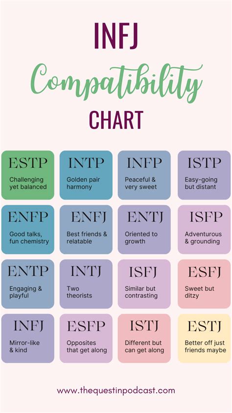 While the above types are often highlighted for their natural compatibility with INFJs, it’s crucial to remember that any two individuals can build a strong relationship regardless of their MBTI type. Love, effort, and understanding are universal building blocks. However, certain type combinations might present unique challenges or require more conscious effort to bridge differences.
