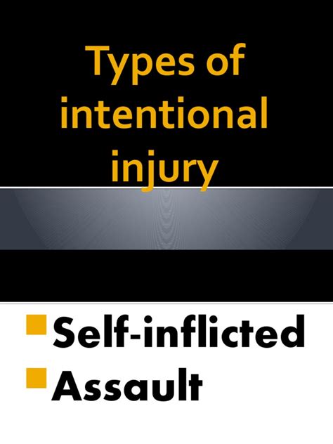So, what exactly is intentional injury ? As mentioned, it’s any injury resulting from a deliberate act. It’s not an accident; someone intentionally sets out to cause harm to another person or even themselves. This contrasts with unintentional injuries, like those from a car crash or a slip and fall. With intentional injuries, there’s a clear intent to inflict pain or damage. It could be physical, like a punch or a stab. Or it could be emotional, like verbal abuse or threats. The key thing is the intent . That’s the core of it, the main characteristic that sets it apart. The implications of this are massive, touching on legal, social, and psychological aspects. This also brings to light the importance of understanding and addressing the root causes of violence and harmful behavior. It’s about recognizing that these actions often stem from underlying issues, such as anger, frustration, or a need for control.