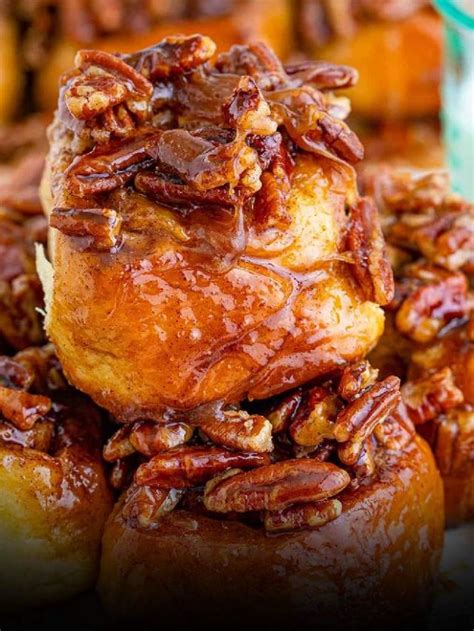 While the buns are rising for the second time, prepare the sticky sauce. In a saucepan, combine the butter, brown sugar, heavy cream, honey or corn syrup, and salt. Cook over medium heat, stirring constantly, until the butter is melted and the sugar is dissolved. Bring to a simmer and cook for 1-2 minutes, until slightly thickened. Remove from heat and pour the sauce evenly over the risen buns. Sprinkle with chopped pecans or walnuts, if desired. Preheat your oven to 350°F (175°C). Bake the buns for 25-30 minutes, or until golden brown and the sauce is bubbly. Keep an eye on them to prevent burning. Let the buns cool in the baking dish for about 10 minutes before inverting them onto a serving platter. This will allow the sticky sauce to coat the buns beautifully. Serve warm and enjoy!