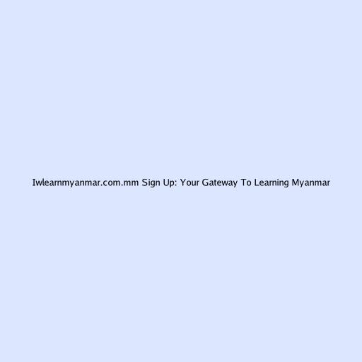 Iwlearnmyanmar.com.mm Sign Up: Your Gateway To Learning Myanmar