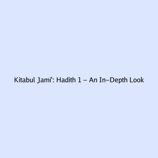 Kitabul Jami’: Hadith 1 - An In-Depth Look
