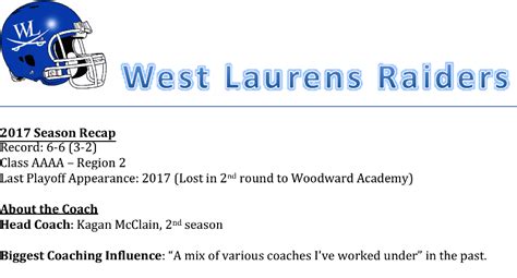 Over the years, the Laurens Raiders have been fortunate to have key coaches who have made significant contributions to the program. These individuals have not only led the team to success but have also shaped the culture and values of the Raiders. The influence of these coaches has been felt throughout the community. They have instilled a winning mindset. They have built a culture of excellence. They have also emphasized the importance of teamwork. The contributions of these key coaches go beyond wins and losses. They have taught their players. They have provided guidance. They have also helped them to develop into well-rounded individuals. They have established a strong foundation for the program. They have fostered a sense of pride. They have also laid the groundwork for future success. They have motivated and inspired the players. They have also guided them through difficult times. The dedication and leadership of these key coaches have been essential. They have helped the Raiders achieve success both on and off the field. The impact of these coaches has had a lasting impact on the program. Their legacies will continue to inspire the Raiders. They have provided the Raiders’ with a winning mindset. They have led the team to victory. They have left a mark on the community.