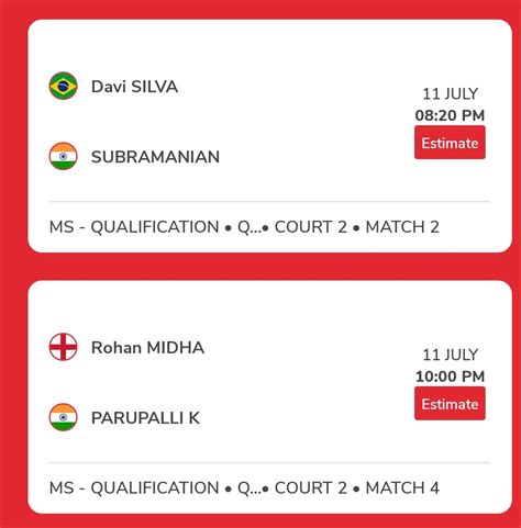 - Round: The schedule will indicate the round of the tournament, such as the first round, quarter-finals, semi-finals, or final. As the tournament progresses, the stakes get higher, and the matches become even more thrilling.