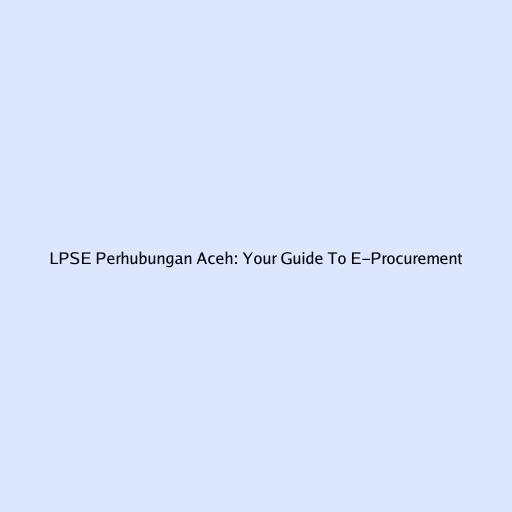 LPSE Perhubungan Aceh: Your Guide To E-Procurement