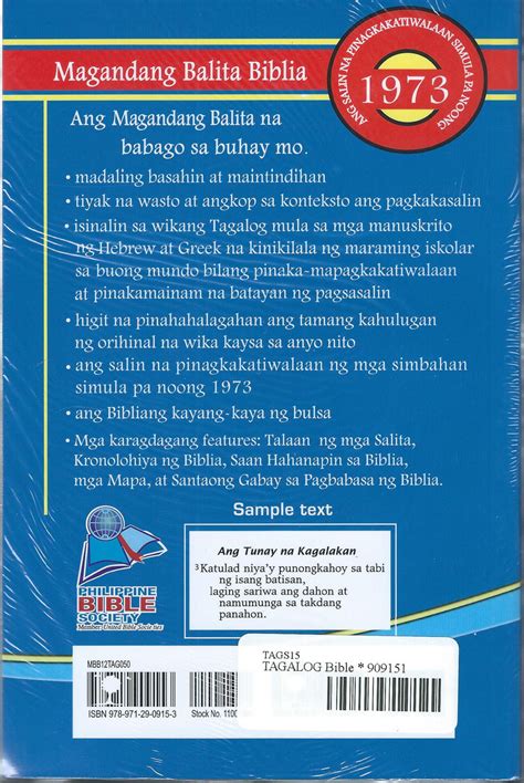 You can find the Magandang Balita Biblia in various places. Most Christian bookstores carry it, and you can also purchase it online from retailers like Amazon or the Philippine Bible Society’s website. Many churches also offer copies of the MBB for sale or donation. Additionally, you can find digital versions of the MBB in mobile apps and online Bible websites. These digital versions often include additional features such as audio recordings, search functions, and note-taking capabilities. Whether you prefer a physical book or a digital version, there are plenty of options available to suit your needs. The Philippine Bible Society also offers the MBB in various formats, including large print editions for those with visual impairments, and pocket-sized editions for those who want a portable version. No matter where you are or what your preferences are, you can easily access the Magandang Balita Biblia and begin your journey of studying the scriptures in Tagalog.