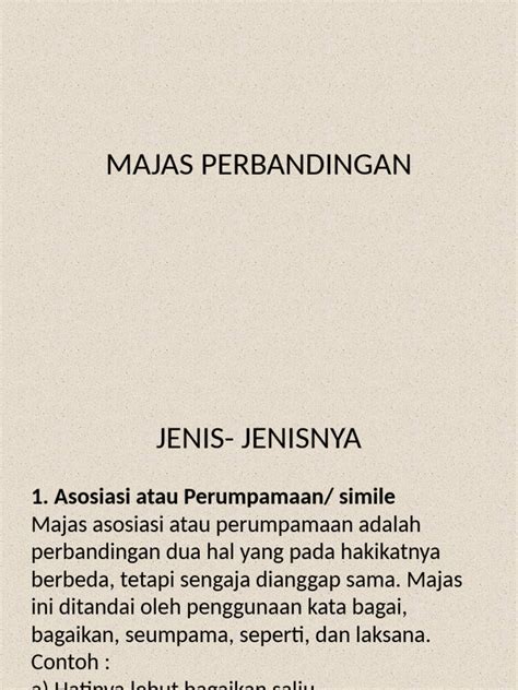 Oke, jadi gini lho, majas perbandingan itu intinya adalah gaya bahasa yang dipakai buat menyandingkan dua hal yang berbeda, tapi punya kemiripan, biar ngasih efek yang lebih kuat dan hidup ke pembaca atau pendengar. Kenapa sih kita butuh majas? Jawabannya simpel, guys: biar nggak bosen! Bayangin aja kalau semua deskripsi itu datar-datar aja, nggak ada gregetnya. Majas perbandingan ini ibarat bumbu penyedap dalam masakan, bikin rasa tulisan kita jadi lebih nendang dan berkesan. Tekniknya macam-macam, ada yang namanya simile, metafora, personifikasi, metonimia, dan yang paling sering kita denger mungkin simile dan metafora. Simile itu yang paling gampang dikenali, soalnya dia pake kata-kata kayak ‘bagai’, ‘seperti’, ‘laksana’, ‘bagaikan’, ‘bak’, ‘ibarat’. Contohnya, ‘wajahnya seputih melati’. Nah, di sini wajah disamakan sama melati karena sama-sama putih. Gampang kan? Kalau metafora, dia itu lebih halus lagi. Dia tuh nggak pake kata-kata perbandingan eksplisit, tapi langsung nyebutin satu hal sebagai hal lain. Contohnya, ‘gadis itu adalah bunga desa’. Nggak ada kata ‘seperti’ atau ‘bagai’, tapi kita langsung paham kalau si gadis ini cantik dan jadi idaman banyak orang, kayak bunga yang indah. Jadi, metafora itu kayak ngasih identitas baru sementara ke objeknya. Penting banget buat kalian yang pengen tulisan kalian nggak gitu-gitu aja. Dengan menguasai majas perbandingan, kalian bisa bikin pembaca tuh kayak ngerasain langsung apa yang kalian gambarin. Misalnya, kalau kalian mau ngedeskripsiin kesedihan, daripada bilang ‘dia sedih banget’, mending pake majas, ‘hatinya terkoyak bagai kertas sobek’. Beda kan efeknya? Langsung ngerasa tuh sakitnya. Makanya, ayo kita gali lebih dalam lagi soal ini.