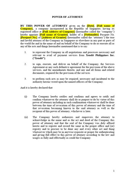- Key Elements of a Valid Malaysian Power of Attorney Template