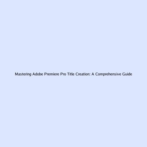 Mastering Adobe Premiere Pro Title Creation: A Comprehensive Guide