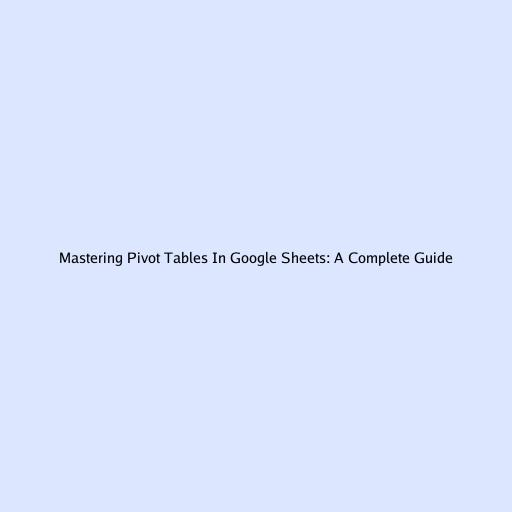 Mastering Pivot Tables In Google Sheets: A Complete Guide