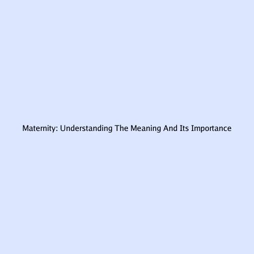 Maternity: Understanding the Meaning and Its Importance