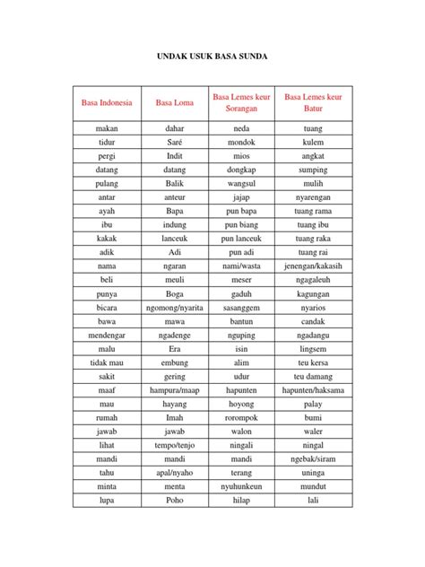 Pada dasarnya, undak usuk basa ini terbagi jadi dua tingkatan utama, yaitu Lalawanan (atau yang sering kita kenal sebagai bahasa kasar/biasa) dan Andanan (atau bahasa halus/sopan). Masing-masing tingkatan ini punya kosakata dan cara pengucapan yang berbeda. Misalnya, kalau kita mau ngomong “saya” ke orang yang lebih tua atau dihormati, kita gak bisa pake kata “aing” atau “kuring”, tapi harus pake “abdi”. Begitu juga sebaliknya, kalau kita ngomong sama teman sebaya atau orang yang lebih muda, pake “aing” atau “kuring” mungkin gak masalah, tapi pake “abdi” malah bisa jadi aneh atau terkesan sombong. Penting banget guys , memahami perbedaan ini biar gak salah langkah dalam berkomunikasi. Ini bukan cuma soal pilihan kata, tapi juga soal sikap dan penghargaan kita terhadap orang lain. Jadi, pas kita pake bahasa Sunda, kita gak cuma ngomong doang, tapi juga nunjukin kalau kita itu orang yang punya tata krama dan menghargai budaya. Ini dia nih, keindahan dan kekayaan bahasa Sunda yang perlu kita jaga dan lestarikan bersama.