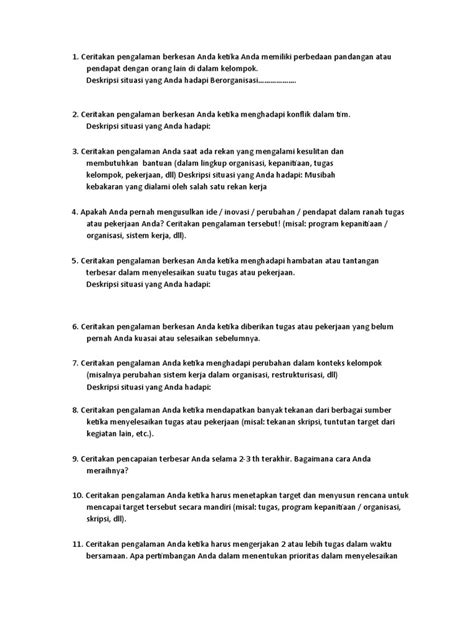 Contoh lain, misalnya kamu ditanya soal pengalaman mengatasi kegagalan.