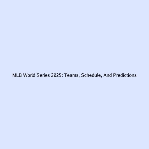 MLB World Series 2025: Teams, Schedule, And Predictions