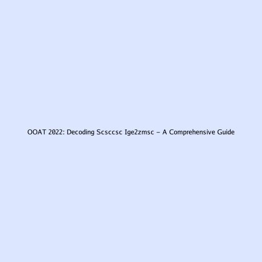 OOAT 2022: Decoding Scsccsc Ige2zmsc - A Comprehensive Guide