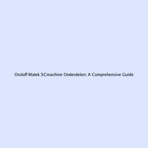 Oroloff Matek SCmachine Onderdelen: A Comprehensive Guide
