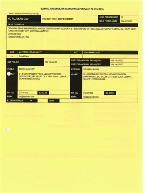- Application forms: You can usually download these from the DBKL website or obtain them from the OSC counter.