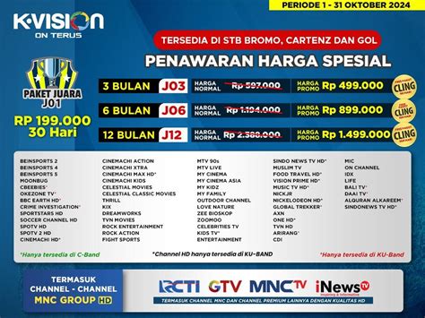2. Pilih paket berlangganan yang sesuai. K Vision biasanya menawarkan beberapa pilihan paket berlangganan yang berbeda, dengan harga dan channel yang berbeda pula. Pastikan kalian memilih paket yang sudah termasuk channel OSC OSC dan SCSC.