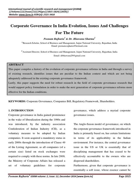Corporate governance in India rests on several key pillars that ensure companies are managed ethically and transparently. These pillars include: transparency , accountability , fairness , and responsibility . Transparency requires companies to disclose all relevant information to stakeholders, including financial performance, risk factors, and governance structures. This helps investors make informed decisions and promotes trust in the company. Accountability ensures that company executives and board members are held responsible for their actions and decisions. This involves establishing clear lines of authority and responsibility, as well as implementing mechanisms for monitoring and evaluating performance. Fairness mandates that all stakeholders, including minority shareholders, employees, and creditors, are treated equitably. This prevents insider trading, conflicts of interest, and other forms of abuse that can harm stakeholders. Responsibility requires companies to act in a socially and environmentally responsible manner. This involves considering the impact of their operations on the community, the environment, and future generations. Together, these pillars form the foundation of a strong corporate governance framework that promotes sustainable growth and value creation. In addition to these core principles, several regulatory bodies and organizations play a crucial role in shaping and enforcing corporate governance standards in India. The Securities and Exchange Board of India (SEBI) is the primary regulator of the securities market and is responsible for setting and enforcing rules related to corporate governance. The Ministry of Corporate Affairs (MCA) oversees the administration of the Companies Act and other laws related to corporate governance. Professional organizations such as the Institute of Company Secretaries of India (ICSI) and the Institute of Chartered Accountants of India (ICAI) also contribute to promoting good governance practices through education, training, and advocacy. Furthermore, the role of independent directors has become increasingly important in ensuring effective corporate governance. Independent directors are non-executive members of the board who are not affiliated with the company’s management. They provide an objective and unbiased perspective on the company’s affairs and help to ensure that the interests of all stakeholders are protected. Their presence on the board enhances the credibility and accountability of the company’s governance practices. In conclusion, corporate governance in India is a multifaceted concept that encompasses a wide range of principles, regulations, and practices. By adhering to these standards, companies can build trust with investors, enhance their reputation, and achieve long-term sustainable growth.
